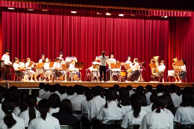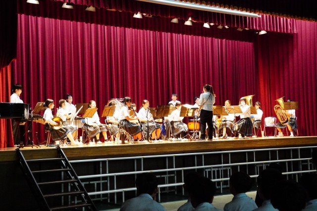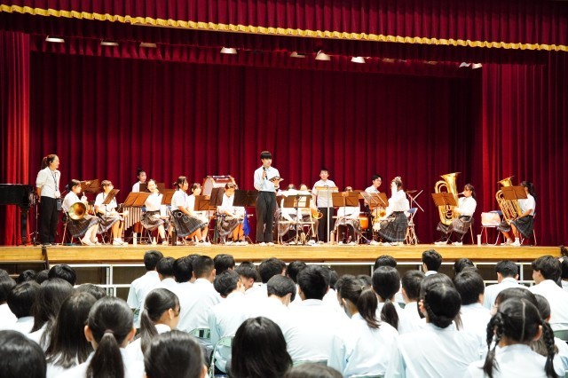 「舞台の部」の様子です。オープニングは吹奏楽部の演奏です。盛り上がりました。