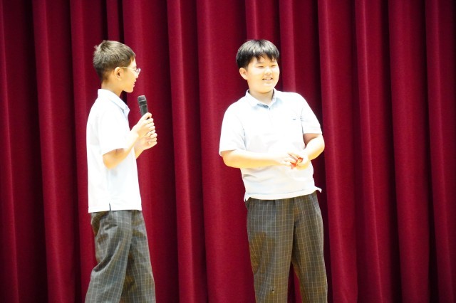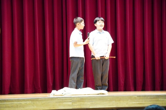 2年2組の有志は、劇を演じてくれました。1年生は手品を披露してくれました。