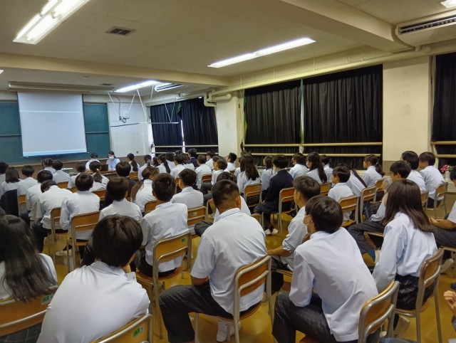 学校薬剤師をお招きし、1年生対象に薬物乱用防止教室を行いました。