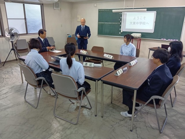 本日、生徒会役員と大東市教育委員会教育長との交流会が行われました。生徒会役員からは、生徒会の活動についてプレゼンを行い教育長から様々なアドバイスをいただきました。