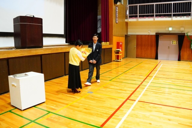 最後は生徒会長から花束の贈呈がありました。