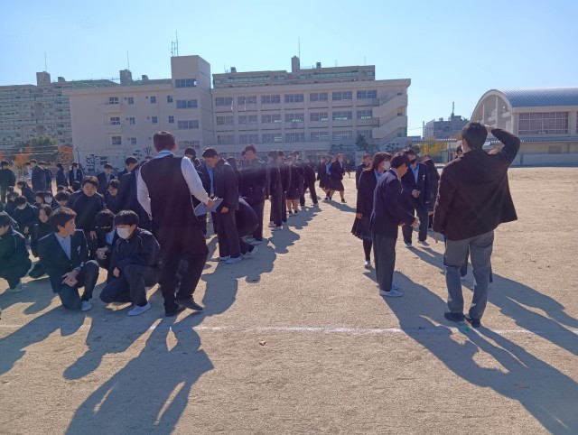理科室から出火したという想定で避難訓練を行いました。各学年、スピーディに行動できました。