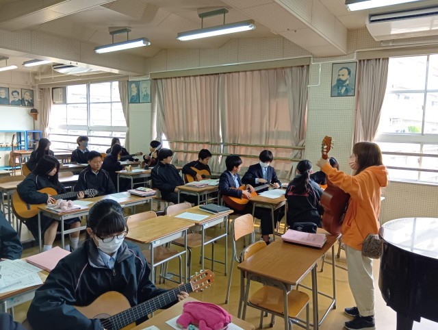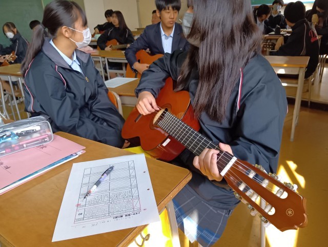 3年2組です。弦の押さえ方が複雑になってきたので、音が出にくくなってきました。頑張れ!