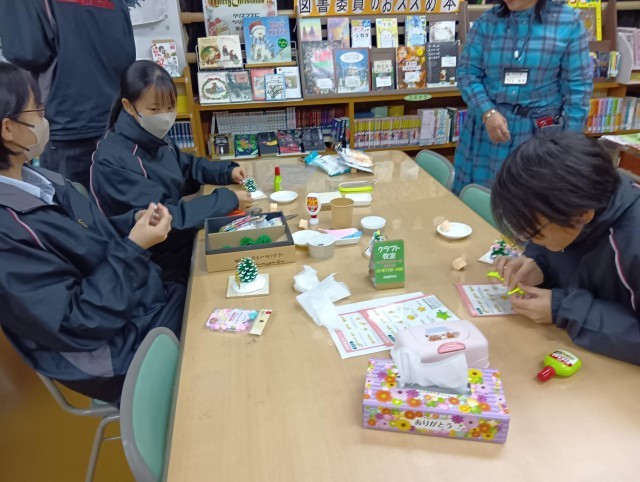 図書館では今日と明日の二日間、クラフト教室を行っています。