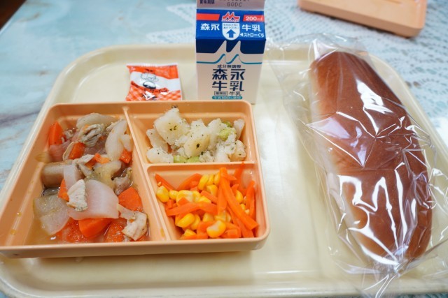 今日の給食(12月18日) 公開日 2025/12/18 更新日 2025/12/18 給食 今日の献立は、コッペパン、バジルチキンの洋風煮、じゃが枝豆、にんじんのレモン醤油あえ、ミルクバター、牛乳です。 いいね(0)