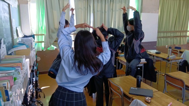 こちらも1年生です。バレー教室で盛り上がっていました。(女子生徒はクラッシックバレーを習っているそうです。)