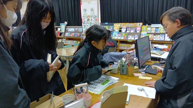 昼休みの学校図書館。