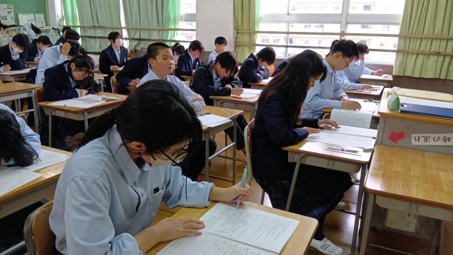 1年生は社会のテストです。