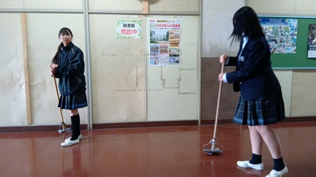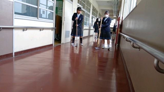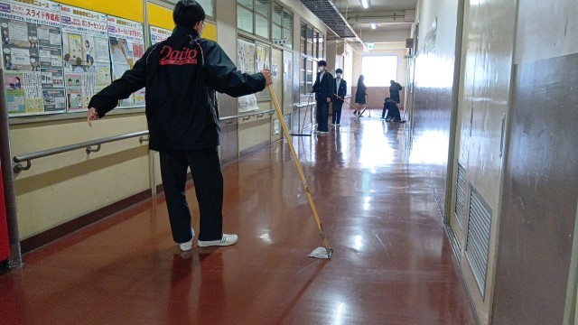 そうじ時間を撮影。今日も丁寧なそうじです。ごくろうさま