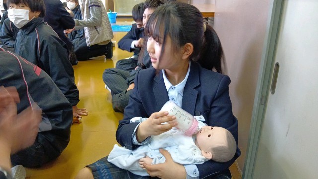 今日の5,6限に「命の学習」を行いました。赤ちゃん人形を抱っこしているときの表情が、とてもよかったです。