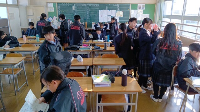 技術の単元テストがあるそうです。朝から頑張っていますね。
