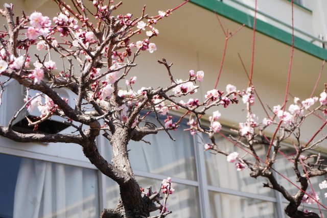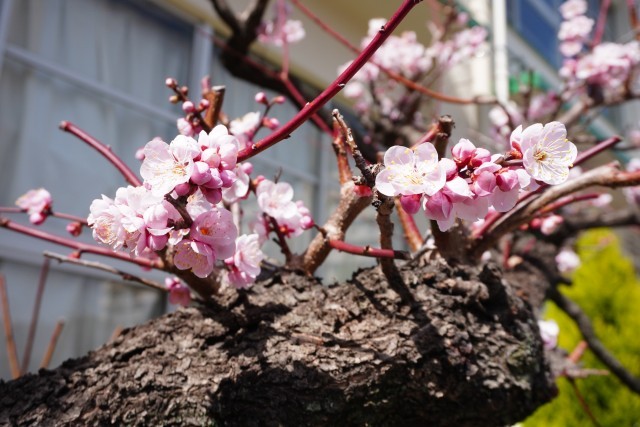 正門前の梅がきれいです