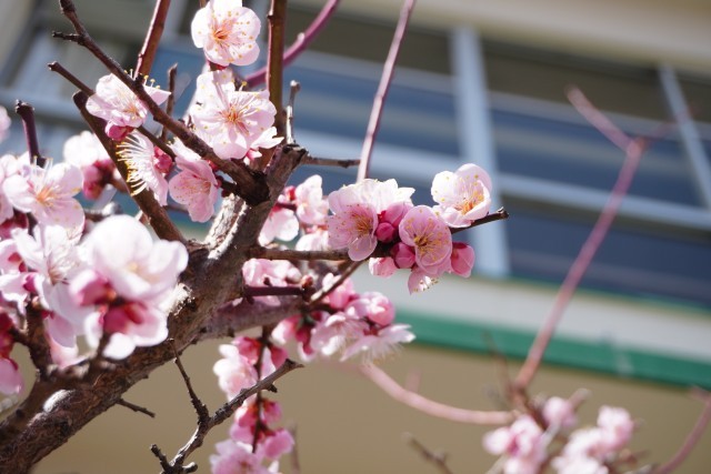 この3連休がとても暖かったので、正門前の梅も咲き始めています。晴れていたので、きれいな写真が撮影できました。
