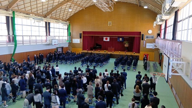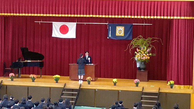 緊張した表情の生徒が多かったですが、新入生紹介での返事は全員とても素晴らしかったです。「新しい中学校生活を頑張りたい」という意欲が伝わってきました。