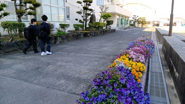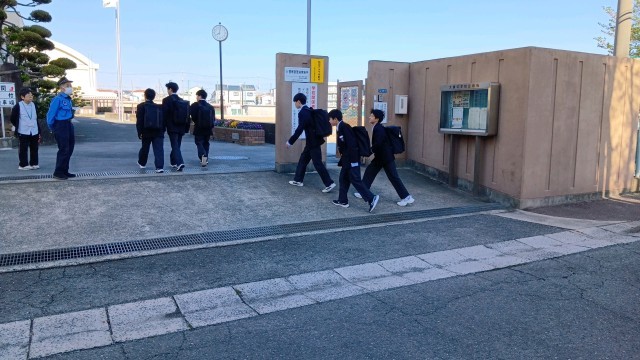 4月16日(木)です。おはようございます。風が強く、正門の前に立っていると肌寒く感じました。