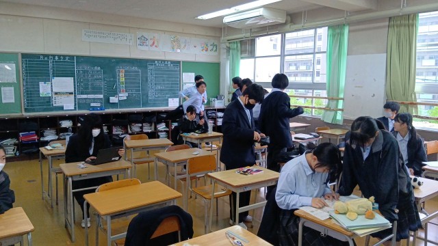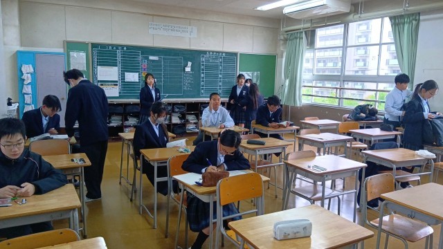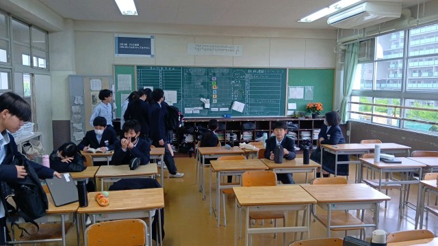 朝の様子です。テスト直前ということで、ノートや参考書を見直している生徒が多かったです。
