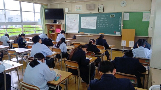 2年生は大東市共通到達度確認テストの問題に向き合っています。