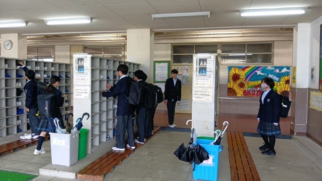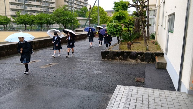 4月30日(木)の登校風景 公開日 2026/04/30 更新日 2026/04/30 全般 4月30日(木)です。おはようございます。今朝は登校時から雨が降っています。今日、明日と下り坂との天気予報です。今日も素晴らしい一日にしましょう! いいね(0)