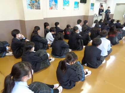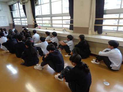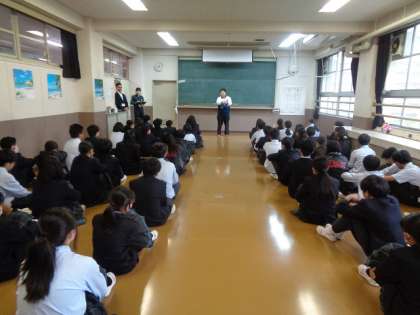 2年生は、学年集会を開いて、学校生活におけるルールの確認をしていました。