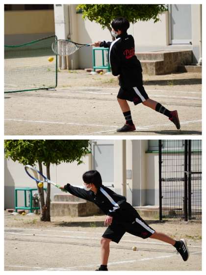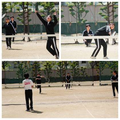 放課後の部活動を撮影しました。天気も良く過ごしやすいです。 テニス部です。