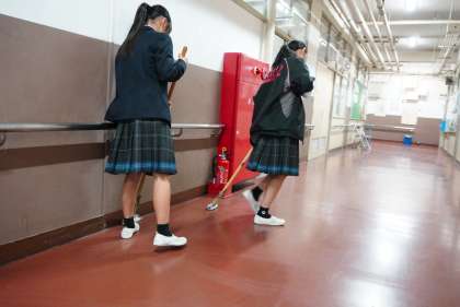 校長室前の廊下を掃除してくれている2年生を撮影しました。