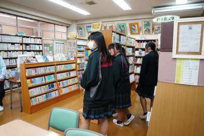 学校図書館で撮影。