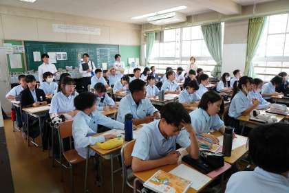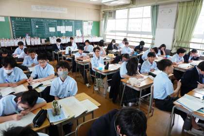1年1組は国語、2組は家庭科の授業です。