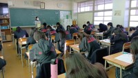 2年1組、2組です。真剣に問題と向き合っています。