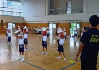 1年生が体育館で団体演技の練習をしていました。クラスごとに練習を行い、他のクラス...