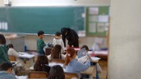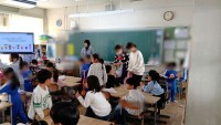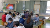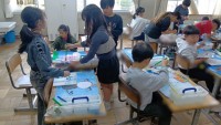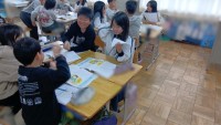 1年生は国語の時間でした。しっかり先生にも書いたことを見てもらっていました。自分...