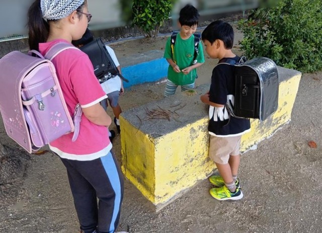 何かを集めているのかな。朝に楽しそうに集まっていたお友だちに会いました。