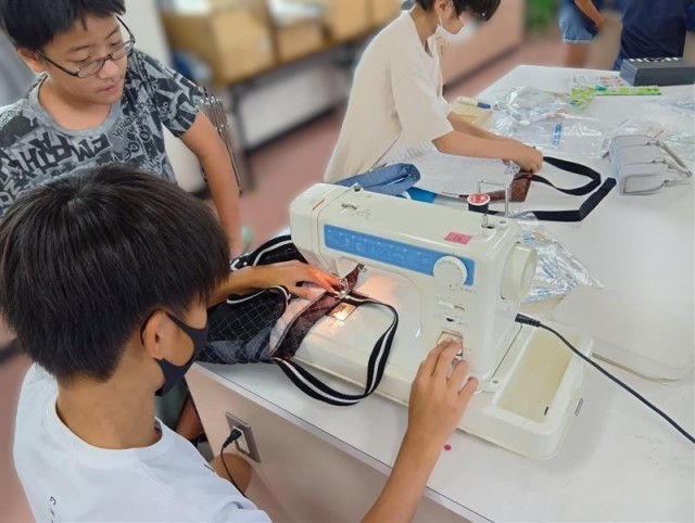 トートバッグを作っているようです。ミシンやアイロンなども使いながら、先生と一緒に楽しい時間を過ごしていました。