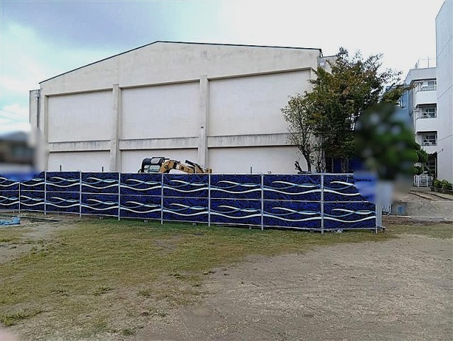 子どもたちへの安全対応のため、柵を設置しての工事対応となっています。