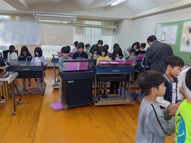 来月の校内音楽会に向けて、3年生が音楽室で練習に励んでいました。