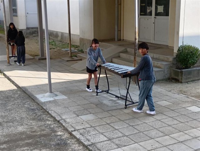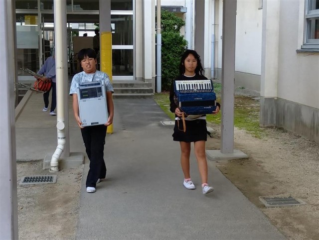 来月の音楽会に向けて楽器の移動をみんなで行いました。