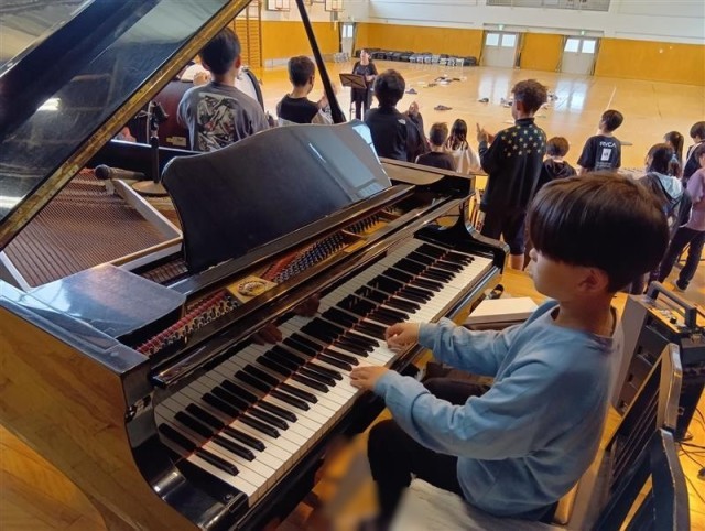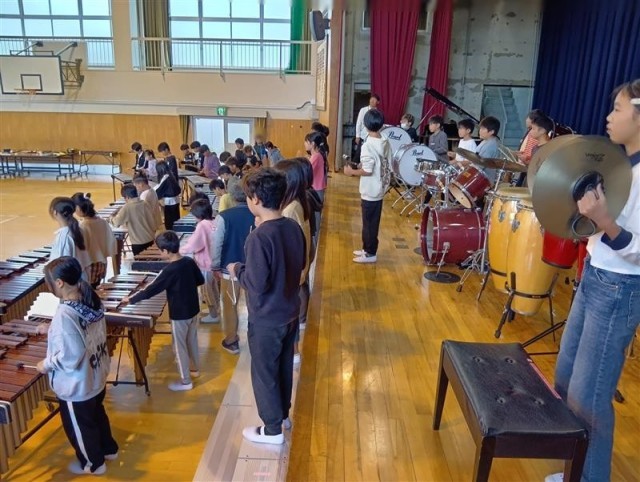 音楽会に向けての練習の場を今日から体育館に移しています。