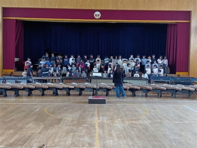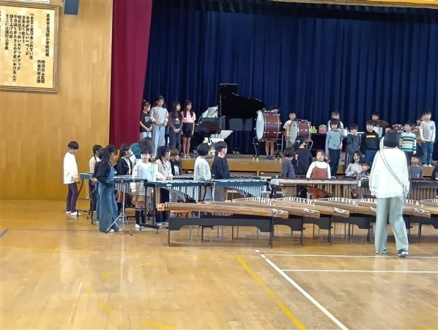3年生も体育館で音楽会での移動方法の確認や立ち位置を確かめていました。