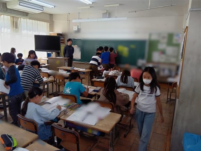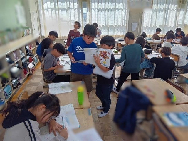 友だちと解答を確認し合って、お互いに学びを深めていました。