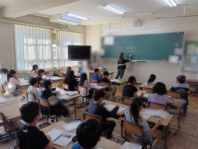 長さについての学びで、長さを比べたり、等分した長さの数値を求めたり、今日のめあてを確認していました。