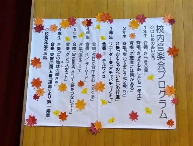 1年生から6年生まで順番に合奏や合唱を披露してくれました。
