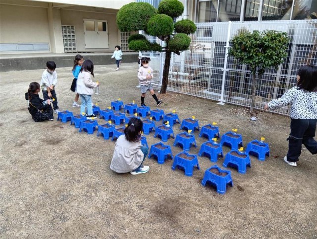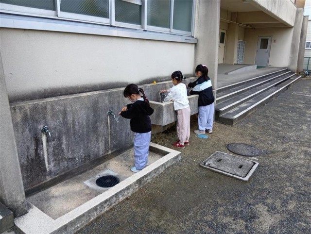 1年生が朝の水やり活動をしていました。