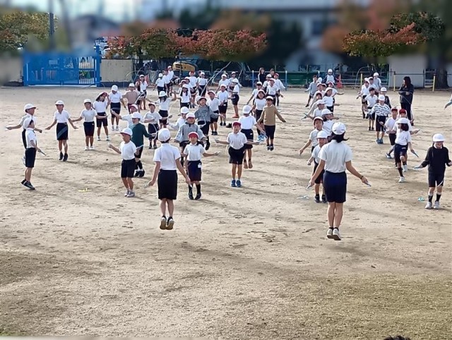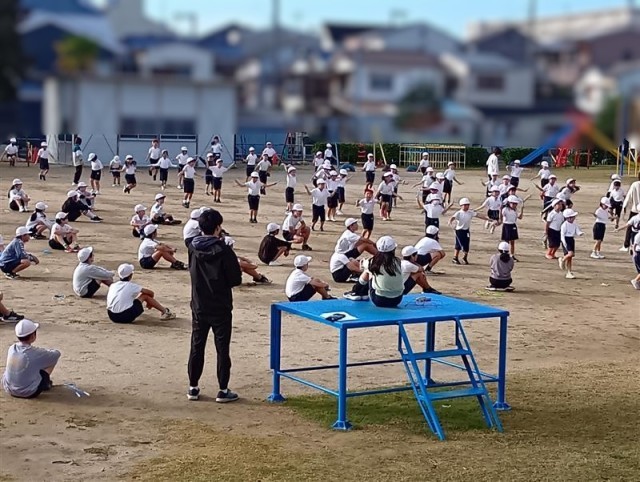 学年ごとの練習では1年生が跳んでいる間に3年生、5年生が「がんばれ!」と応援してくれていました。