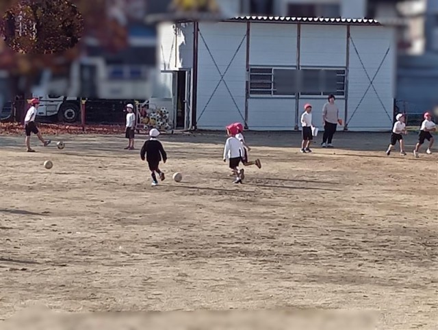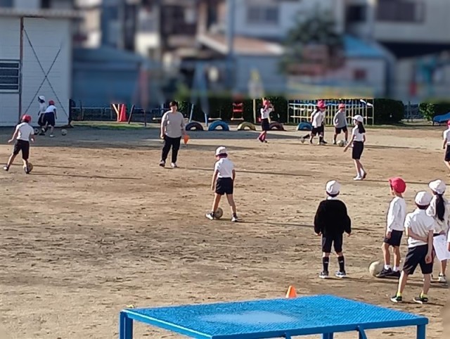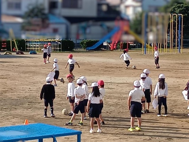 2年生がクラス合同で体育の授業を運動場で行っていました。