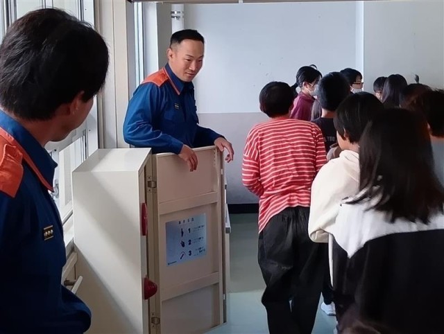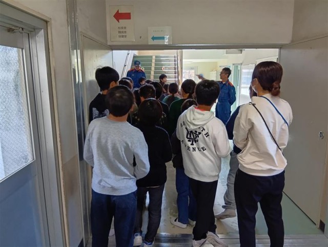 消火栓の中を見たり、校舎内からの避難についての学びもしました。