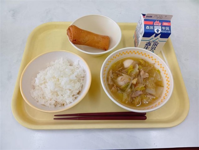 今日は、八宝菜とはるまきでした。