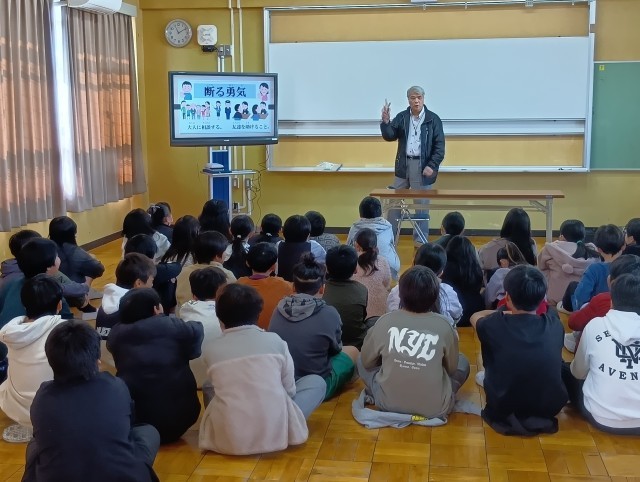 枚方少年サポートセンターの元警察官の方にお越しいただき、主に万引きやSNSの被害についてお話しいただきました。