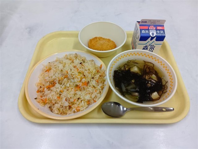 今日は、焼きめし、鰤キャベツカツ、もずくスープでした。