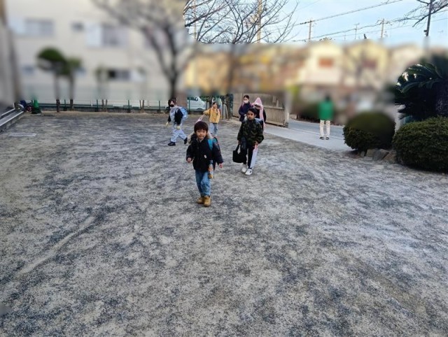寒い中、地域の見守り隊の方が子どもたちの安全を今日も見守っていただいていました。