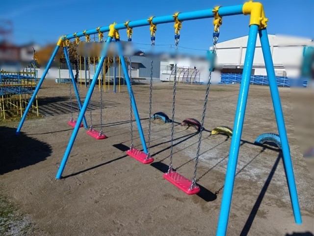 運動場にあるブランコが経年劣化していたこともあり、教育委員会にお願いして部品交換も含め補修していただきました。