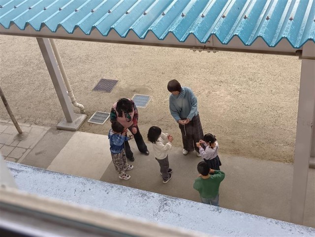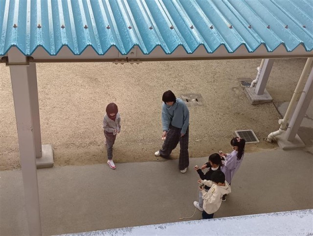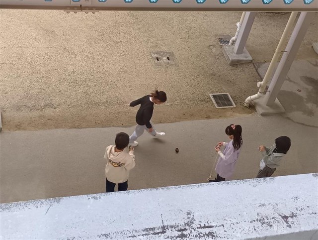 1年生がコマ回しをしていました。